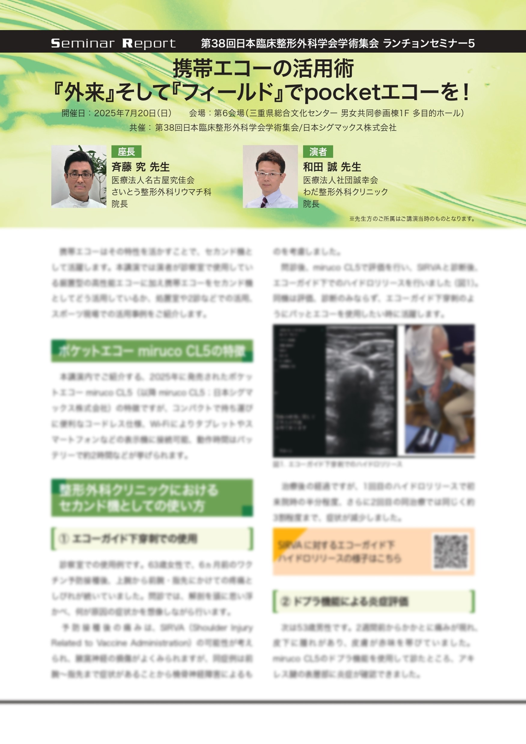 第38回日本臨床整形外科学会学術集会での弊社共催ランチョンセミナーのセミナーレポートです。